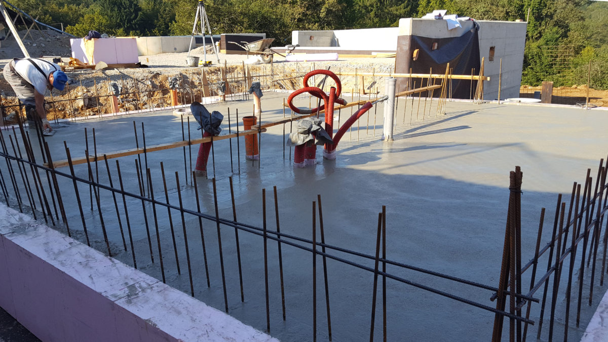 Na idilični lokaciji v okolici Grosupljega smo pričeli z gradnjo enostanovanjske hiše v pasivnem standardu. Temeljna plošča objekta bo izolirana s toplotnoizolativnimi elementi JUBHome BASE debeline 24 cm. Za obodne stene bomo uporabili sistem JUBHome WALL 465 s toplotno prehodnostjo 0,099 W/m²K.